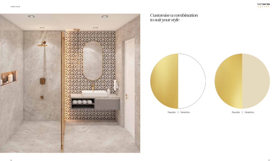 exquisite golds, this classic, dependable tone is equally versatile, and neutral enough to get along with a wide range of design themes and shades. As a nish, it brings the warmth of brown as well as the cool elegance of white, and evokes an equally vast range of moods that are both calming, and sophisticated.